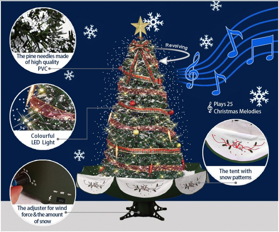 - Rotirajuća okićena jelka sa snegom - 190 cm