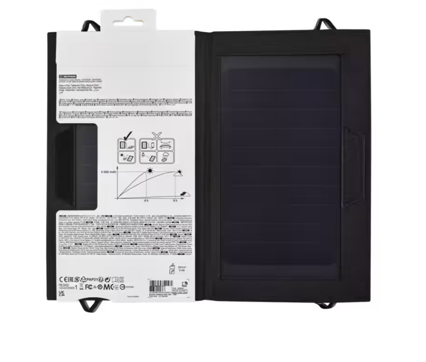 - Standardni USB ulaz kompatibilan sa svim tipovima USB kabala. S obzirom da se napajanje menja u zavisnosti od sunčeve svetlosti, nemojte koristiti panel sa pametnim telefonom ako je panel pričvršćen za ranac na kojem jačina sunca varira. Naime, pametni telefoni imaju sigurnosnu meru koja sprečava punjenje ako je napajanje nepravilno.