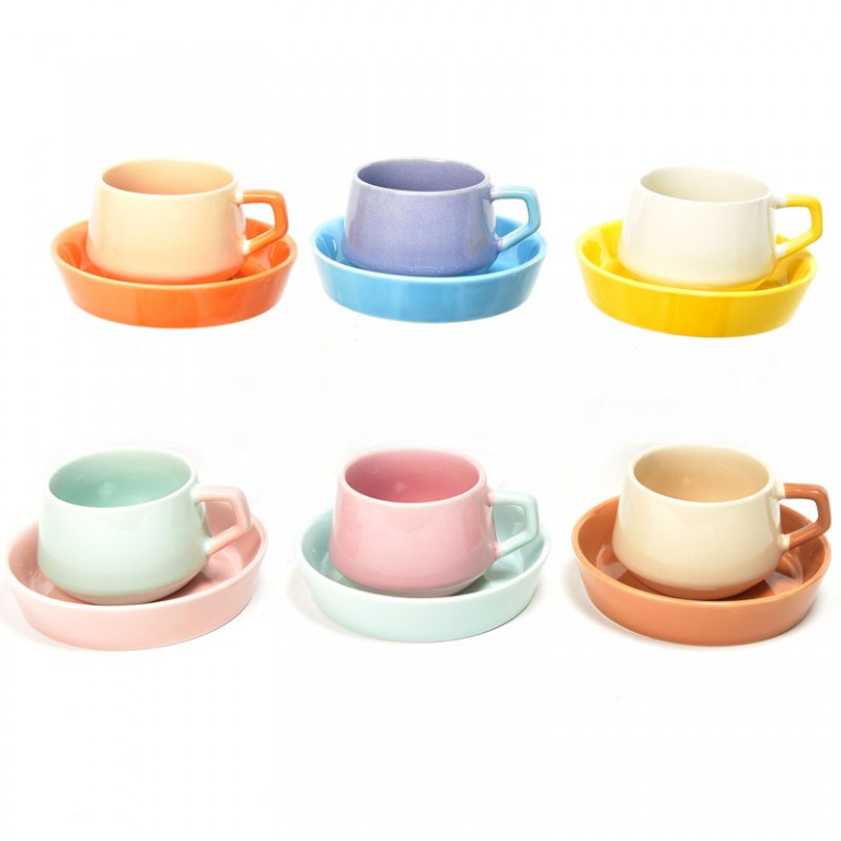 - Šoljice od 100ml letnjih boja u setu sa tacnicom . Dimenzije šoljice: 6cmxH4,5cm. Tacna: prečnik 11cm.