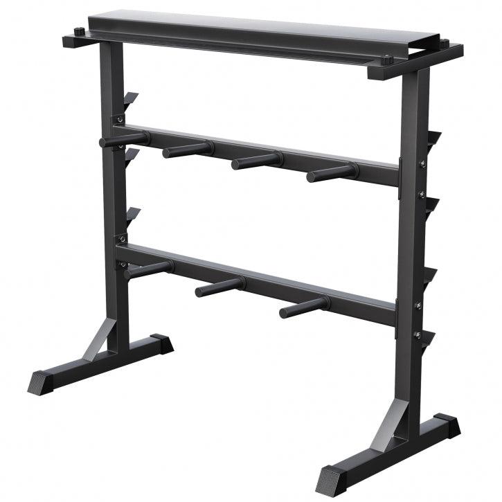 Stalak za tegove – Crni/Beli/Srebrni Organizuj svoj prostor za trening kao profesionalac uz stalak za tegove Gorilla Sports u crno/belo/srebrnoj boji. Ovaj stabilan i funkcionalan stalak idealan je za ozbiljne vežbače sa velikom kolekcijom tegova i šipki. Sa sedam odvojenih nosača za ploče i četiri nosača za dugačke šipke, sve što ti treba biće ti uvek na dohvat ruke – bez nepotrebnih pauza tokom treninga. Tehničke karakteristike Materijal: stabilna konstrukcija od kvadratnih čeličnih cevi, studijski kvalitet Nosači za ploče: odgovaraju pločama prečnika 30/31 mm Dodatna polica: ergonomski postavljena na vrhu stalka, savršena za odlaganje kratkih tegova Boja: crna/bela/srebrna Nosivost gornje police: do 200 kg Nosivost pojedinačnog nosača ploča: do 100 kg Ukupna nosivost: do 400 kg Dimenzije (D x Š x V): 119 x 52 x 100 cm Težina: 24 kg Dimenzije i raspored nosača Polica za kratke tegove: 108 x 24 cm, širina otvora 12 cm Nosači za ploče: dužina 20 cm, razmak 36 cm Razmak između nosača: Gornji (3 nosača): 29 cm Donji (4 nosača): 22 cm Prednosti Savršena organizacija tegova i šipki Jednostavan pristup svim pločama Mogućnost brzog menjanja opterećenja tokom treninga Pogodan za kućne teretane i profesionalne prostore Ovaj stalak je tvoj saveznik za uredan i efikasan trening prostor – biraj boju koja ti se najviše uklapa i napravi savršeni kutak za vežbanje.