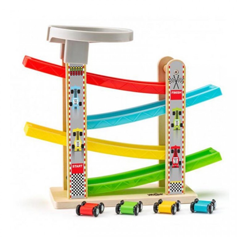 - Kada dete stavi automobil na pocetak, on se spušta i na svakom spratu skrece i nastavljaju svojim putem