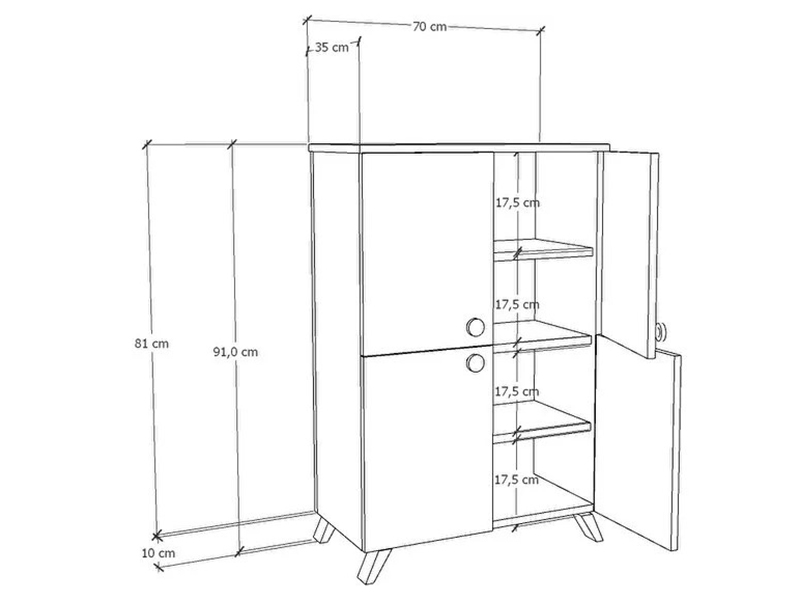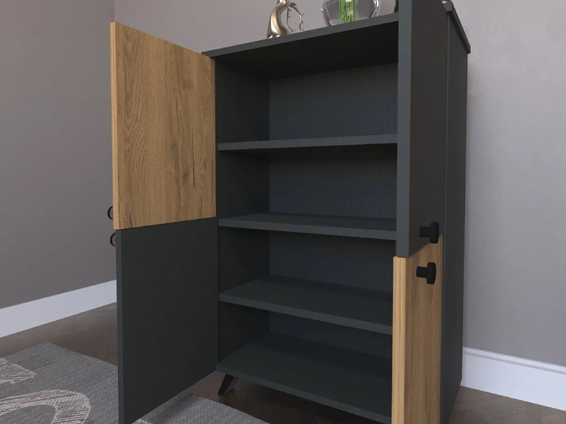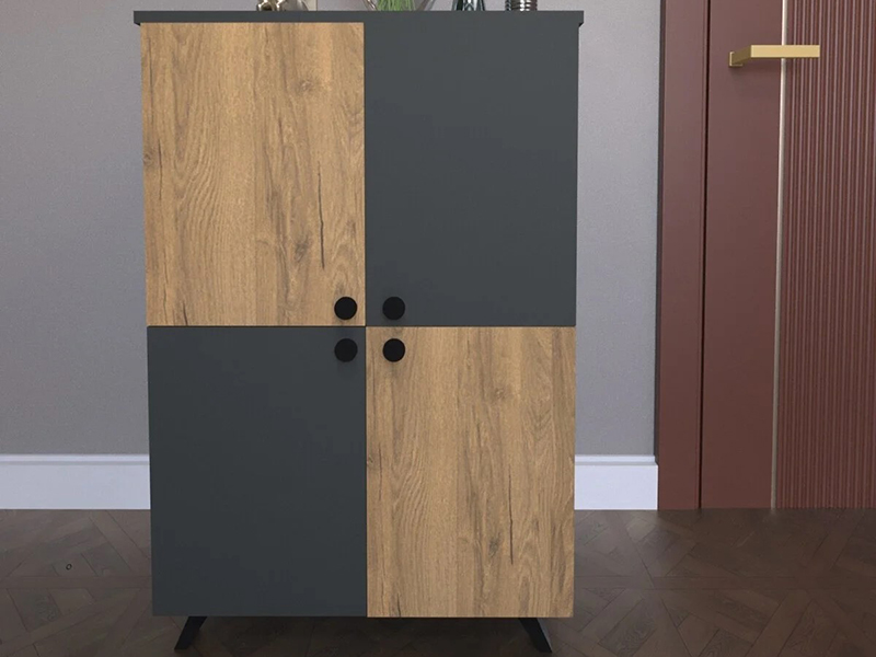Stilski cipelarnik 4 vrata sivi * Dimenzije: Š:70cm D:35cm V:91cm Stilski cipelarnik 4 vrata sivi izrađen je od visokokvalitetnog univera debljine 18 mm obložen melaminskom folijom u sivoj boji u kombinaciji sa drvnim dezenom,okantovan abs trakom na ivicama. Sadrži četiri polja za odlaganje obuće i tri police. Ovaj funkcionalan i estetski komad nameštaja ukrasiće svaki prostor. Proizvod je napravljen od E1 sertifikovanih sirovina koje ne sadrže kancerogene supstance.