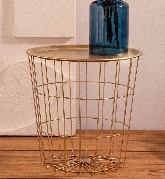 - Zlatna boja dodaje mu elegancije, a jednostavni oblici osiguravaju trajnu estetiku. Vrh stola služi kao poklopac ispod kojeg se nalazi funkcionalan prostor za skladištenje.
