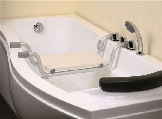 Ovo je čvrsta stolica za kadu, koju jednostavno zakačite i koja pruža osećaj udobnosti.
