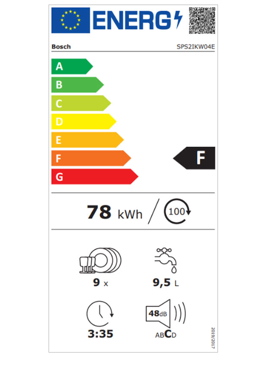 - Potrošnja energije² / vode³: 78 kWh / 9.5 l