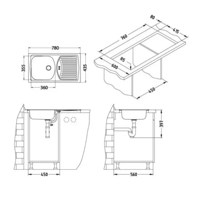 - Pravougaona sudopera iz linije Basic 1Lux 150 , u sivoj boji, izradjena od inox-a, dimenzija 780 x 435 mm /rupa za odvod : fi70. Jednodelna ugradna sudopera sa posudom dimenzija 360 x 355 x 140mm.