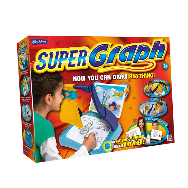 Super graph idealna je igračka za buduće umetnike. Supergraf omogućava da nacrtate bilo šta, bilo gde, sa svojim jedinstvenim, sistemom za crtanje. Omogućava kopiranje bilo koje slike. Možete da reprodukujte pejzaže, zgrade, mrtvu prirodu ili čak portrete svojih prijatelja i porodice. Supergraf je lagan i prenosiv i ne zahteva napajanje, tako da ga možete uvek nositi sa sobom. Lako se sklapa u formu koferčeta.