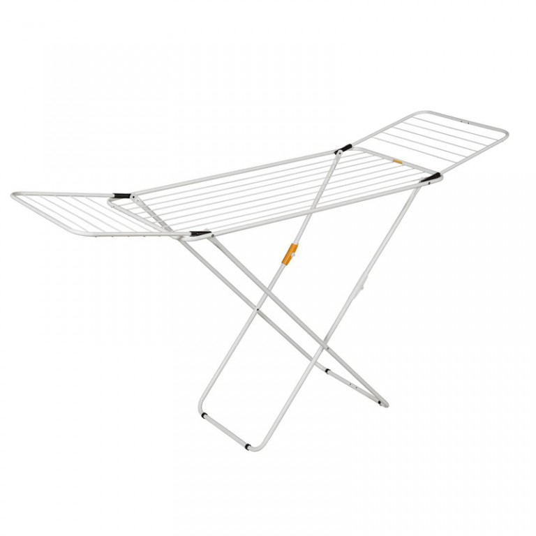 Veoma stabilna sušilica za veš sa proširivim krilima. Patentirana konstrukcija zaključava krila u sklopljenom položaju, što olakšava rukovanje i prenošenje. Postolje za noge opremljeno je čvrstim mehanizmom za zaključavanje koji zaključava noge, kada se otvore, radi dodatne sigurnosti.
