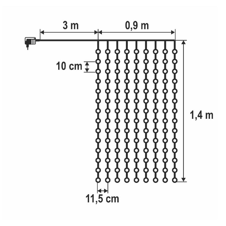 Pokriva površinu 0,9 m širine i 1,4 m visine, zahvaljujući 9 niti sa po 14 LED dioda