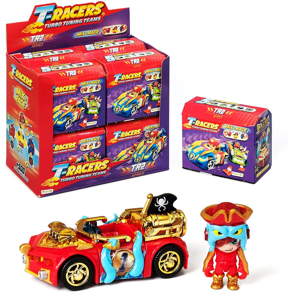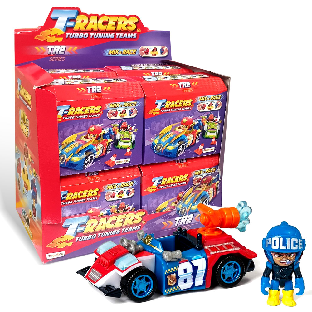 Sakupite 8 različitih automobila kolekcije T-racers turbo tuning teams i otkrijte njihove avanture u epizodama crtanih filmova. U pakovanju se nalaze kesice iznenađenja sa elementima za sklapanje vozila - kombinujte prednje i zadnje delove, kokpit i točkove da napravite sopstveni automobil po meri.