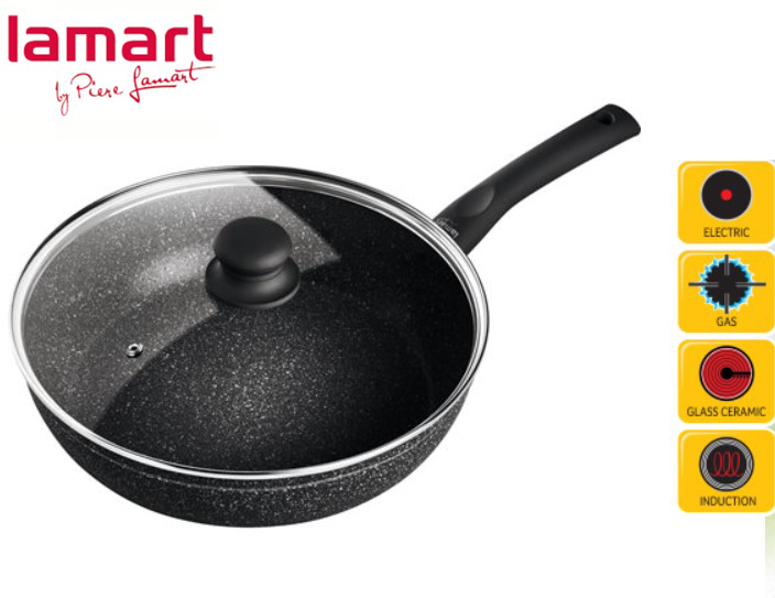 - Tiganj ima unutrašnju mermernu površinu koja je otporna na habanje i pečenje, sa debelom podlogom i veoma elegantnom mekom drškom.
