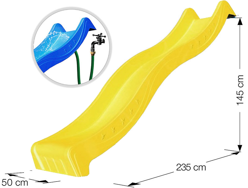 Tobogani su izuzetno zabavni svi ćemo se složiti. Ali kada u tobogan ubacite i vodu, vreli letnji dani postaju manje dosadni za vaše mališane. Jednostavno savršeni vid zabave. Najuzbudljiviji način za spuštanje sa drvene platforme ili konstrukcije koju sami osmislite. Ovaj tobogan napravljen je od visoko kvalitetne HDPE plastike. 265 cm tobogan dolazi sa dodatkom za priključivanje baštenskog creva i idealan je za manja igrališta ili manja dvorišta. Plastika od koje je izrađen tobogan je izdržljiva i neće izbledeti pod uticajemn UV zraka.