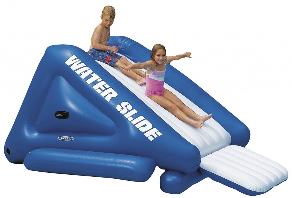 Pretvorite bilo koji bazen u vodeni park ovog leta uz pomoć ovog Intex tobogana. Veoma lak za nameštanje, samo ga naduvajte, prikačite baštensko crevo i zabavljajte se !!!dimenzije 302 x 206 x 135cm