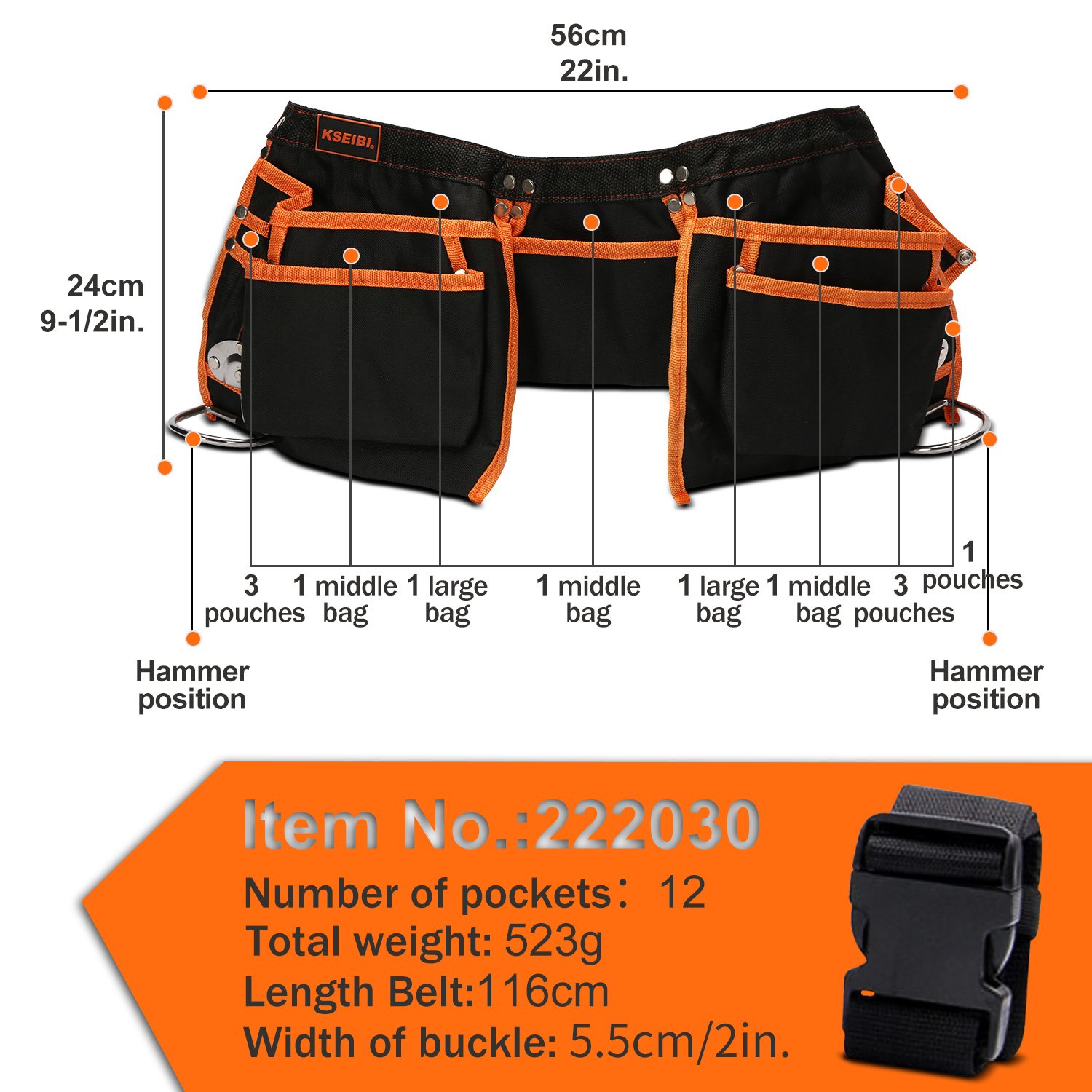 Kombinovana torbica za električare KSEIBI 222030 napravljena je od Oksford tkanine. Jednostavana za nošenje, omogućava vam upotrebu u različitim okolnostima. Dizajn sa više džepova olakšava držanje, upotrebu i organizovanje radnog alata.