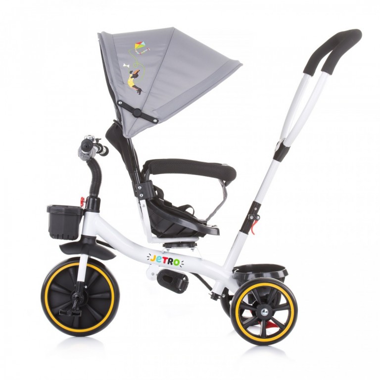 Tricikl za decu Chipolino Jetro namenjen je deci starijoj od 18 meseci. Dete može samostalno voziti tricikl pomoću pedala ili vi možete upravljati. Takođe, dete može biti okrenuto u smeru kretanja ili ka roditelju.