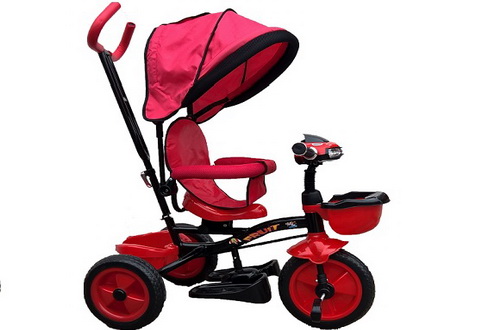Veoma jaka metalna konstrukcija cini osnovu ovog tricikla-guralice, gabaritnog izgleda cija je duzina oko 90 cm, a visina preko 1.1m.Plasticni delovi su izradjeni od jake plastike koja je otporna na atmosferske prilike I ne bledi na suncu.Tenda detetu pruza zastitu od sunca, a mekano sediste dodatno omogucava bezbednu voznju za decu mladjeg uzrasta.Tricikl je multifunkcionalan, kako dete raste mozete ga prilagoditi tako sto cete ukloniti drzac za noge, rucicu za guranje i tendu, i dobijate klasican tricikl koje dete samostalno vozi sve do predskolskog uzrasta.