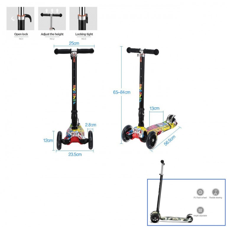 Trotinet Maxi 650 flower je namenjen malenoj deci i njihovim prvim dogodovštinama na točkovima. Lagan i šareni okvir lako podnosi telo korisnika i do 30kg. Trotinet ima izdržljive svetlece točkove dizajnirane za male avanturiste i ergonomski oblikovane ručice za udobno držanje.Dostupan je u 6 razlicitih motiva, a prilikom narucivanja je obavezno upisati broj kojim je oznacen motiv zeljenog proizvoda