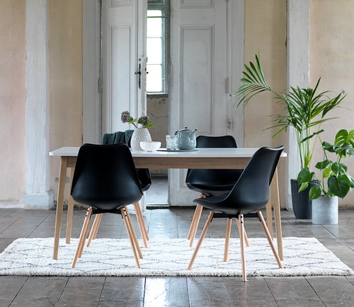 - Uz garnituru Kolle se isporučuju 4 stolice od masivne hrastovine sa oblikovanim sedištem sa jastukom koji je presvučen tkaninom