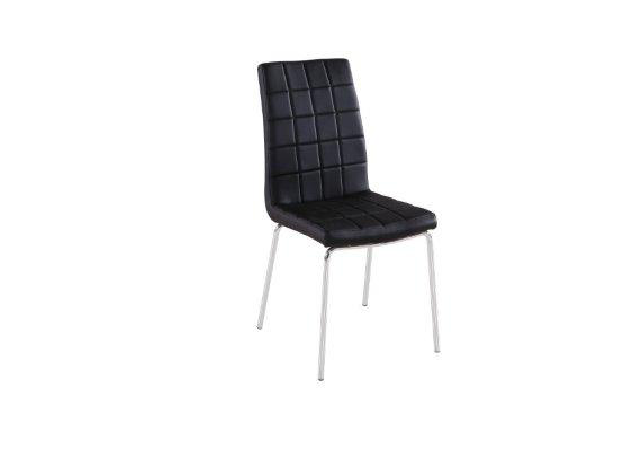 Trpezarijska stolica sa metalnom konstrukcijom. Naslon i sedalni deo presvučeni eko kožom.