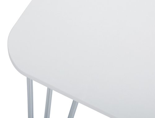 Sveden a opet dovoljno atraktivan izgled ovog  trpezarijskog stola ostaviće vas bez daha. Metalna konstrukcija hromirana za potpuno blještavi sjaj i medijapan ploča presvučena belim melaminom. Melamin je izuzetno dugotrajan materijal i može realno prikazati drvo, kamen, mermer...