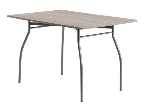 Uklopiće se u svaki prostor ovaj elegantni trpezarijski sto pepeljaste boje. Ploča je od medijapana ukrašenog furnirom a konstrukcija je metalna. Ukoliko sređujete vašu trpezariju pogledajte i naše trpezarijske stolice.