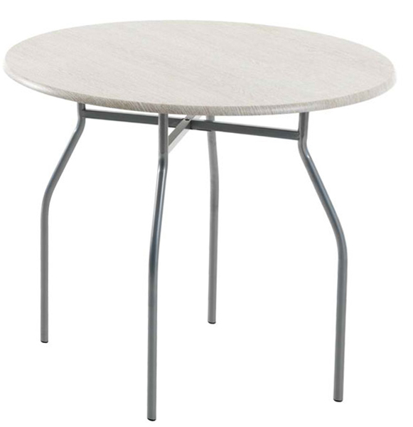 Jednostavan i elegantan trpezarijski sto ukrašen furnirom. Poloča je od medijapana, konstrukcija stola je metalna. Svojim izgledom i nežnom pepeljastom bojom uklopiće se u svaki prostor.