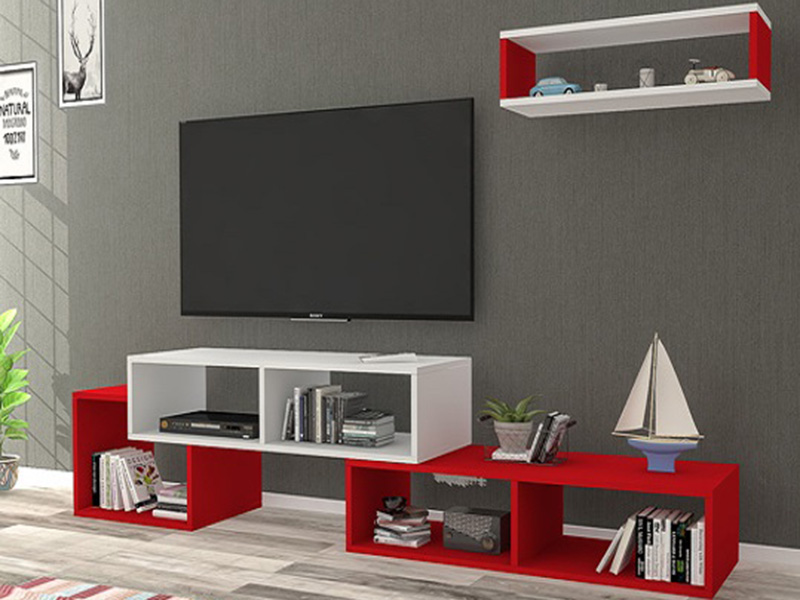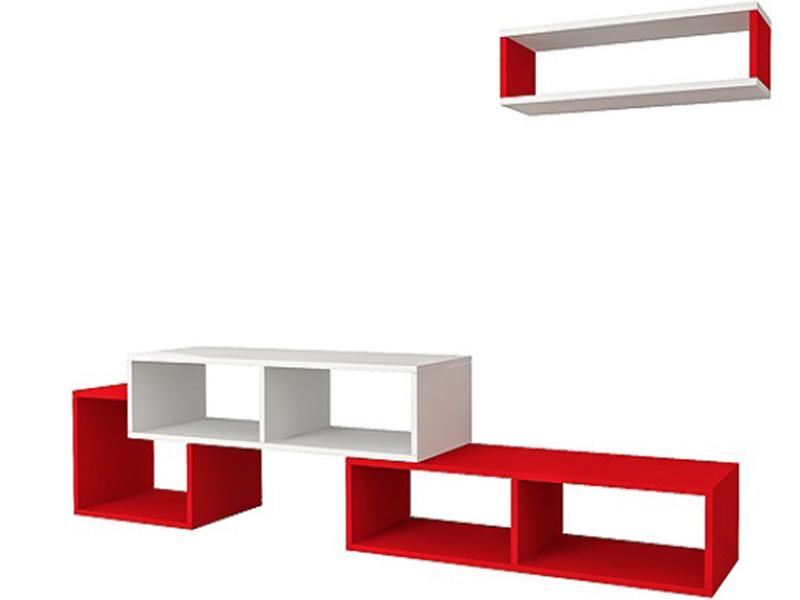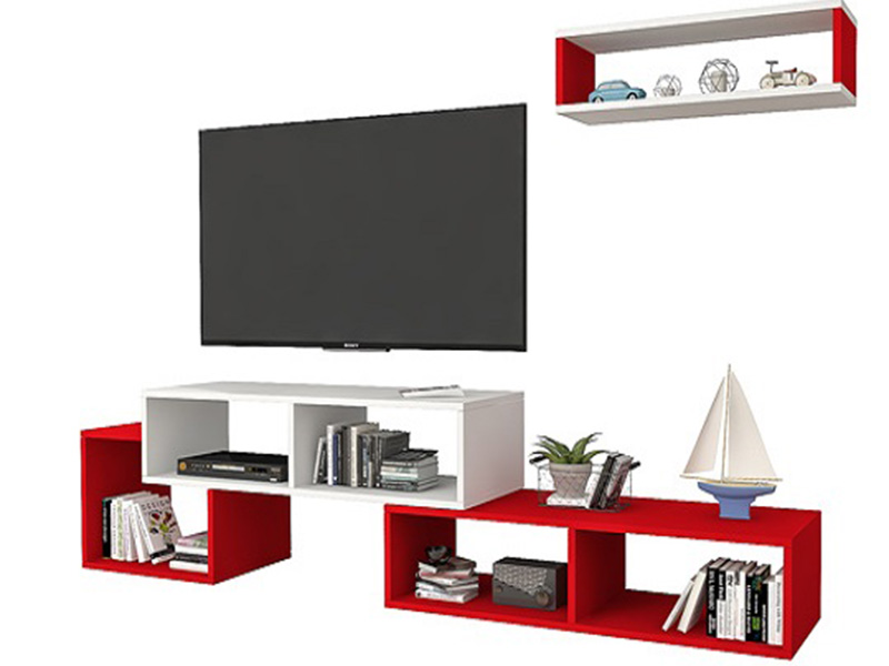Tv komoda kaskadna - belo crvena sa zidnom policom