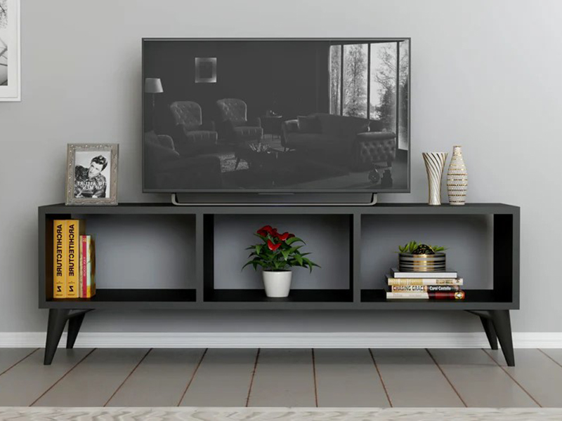 Tv komoda Kent crna * Dimenzije : Š:120 cm D:35 cm V:40 cm U ponudi nam je Tv komoda Kent crna,izrađena od kvalitetnog univera 18 mm obloženog melaminskom folijom u crnoj boji i kant abs traci. Noge su od tvrde plastike. Otvorena tv polica jednostavna i elegantna može biti pravi izbor za dnevni boravak kao i spavaću,radnu sobu,... U okviru E1 standarda materijal ne sadrži kancerogene supstance. Napomena:proizvod se može isporučiti u roku od 30 radnih dana