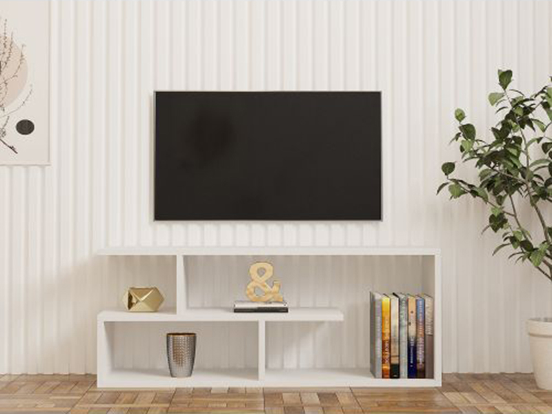 Tv komoda Kolo belo * Dimenzije: Š:100 cm D:30 cm V:40 cm Tv komoda Kolo belo izrađena je od kvalitetne iverice 18 mm oplemenjene melaminskom folijom bele boje,tanja abs traka na ivicama. Spiralna struktura jednostavnog i uvek aktuelnog dizajna. Izrađena je od sertifikovanih materijala.