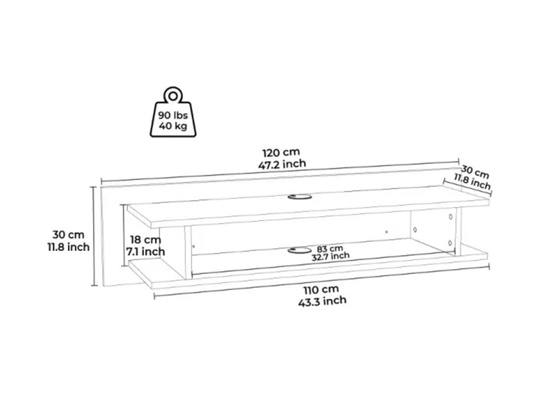 Tv komoda je izradjena od univera debljine 18mm I moze biti fiksirana za zid.