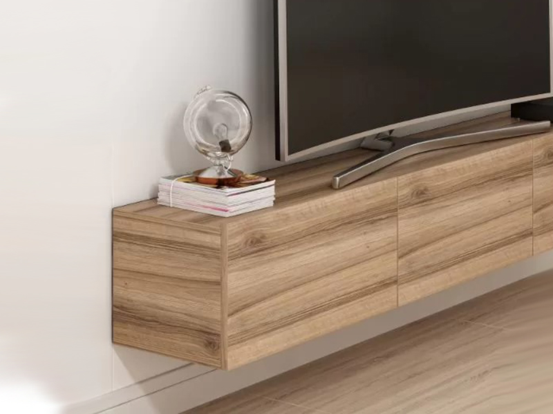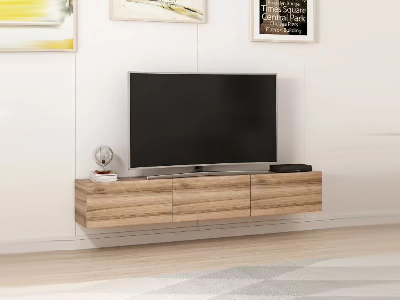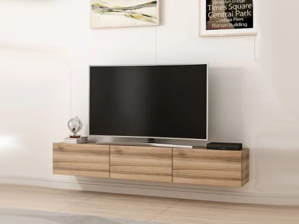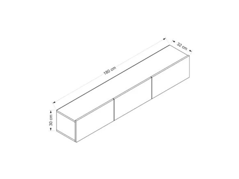 Tv komoda RIGEL 2 drvni dezen Dimenzije: Š:180cm D:30cm V:32cm Tv komoda Rigel 2 je izradjena od univera debljine 18mm. Frontovi se otvaraju na dole. Kači se na zid. Svi naši proizvodi proizvedeni su od univera 18mm sa visokokvalitetnom melaminskom površinom. Naši proizvodi se proizvode od sirovina sertifikovanih prema E1 standardu, koje ne sadrže kancerogene supstance i koje se pridržavaju zdravstvenih normi Evropske unije. NAPOMENA: Troškovi montaže i transporta nisu u ceni.