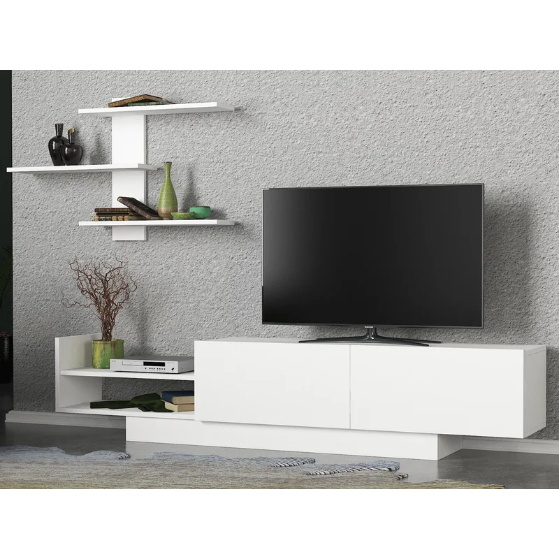 Tv komoda SN 130 * Dimenzije : Š:180 cm D:31.8cm V:40 cm U ponudi nam je Tv komoda SN 130,izrađena od kvalitetnog univera 18 mm obloženog melaminskom folijom u beloj boji, kant traka abs 0.5 mm. Dekorativna zidna polica upotpunjuje ovaj komplet. Svedena i elegantna ova tv polica može biti pravi izbor za dnevni boravak. U okviru E1 standarda materijal ne sadrži kancerogene supstance.