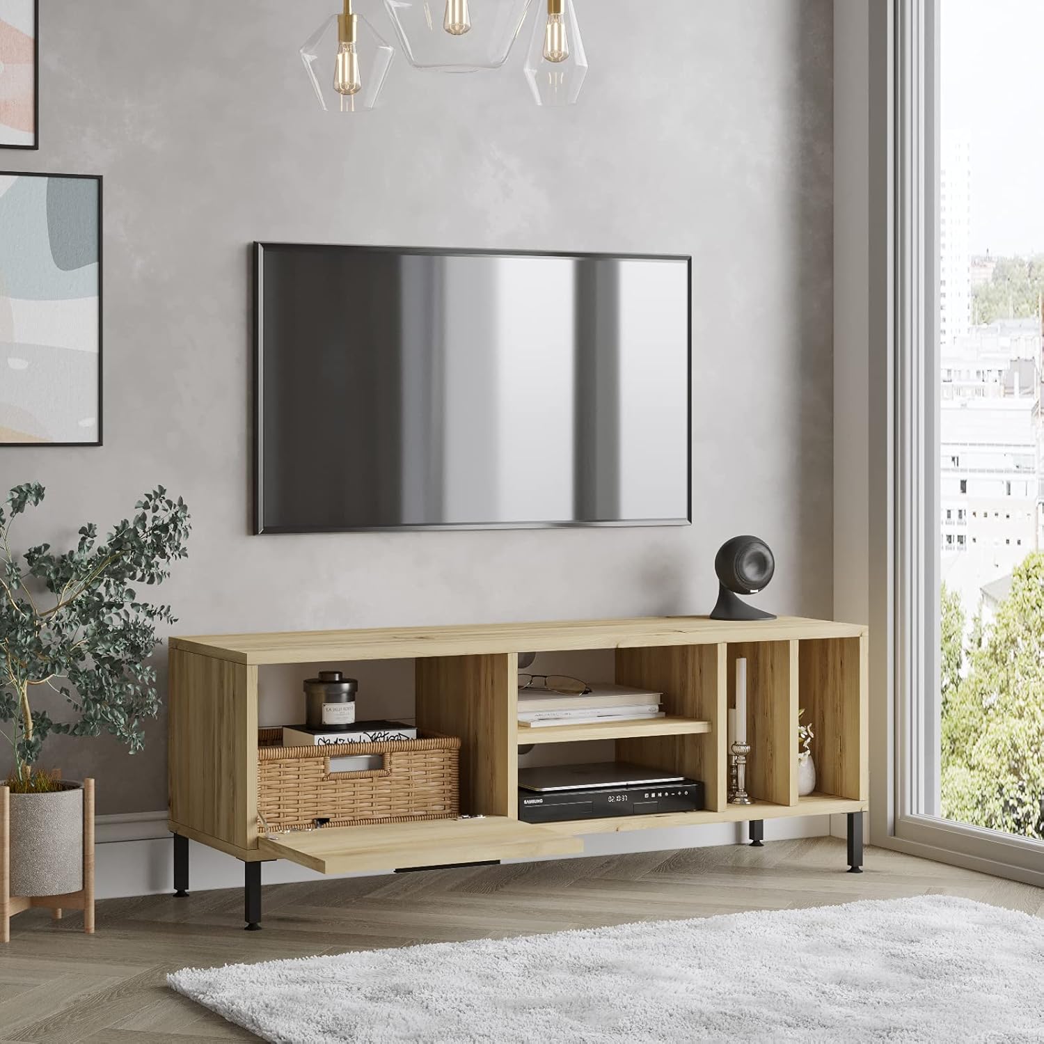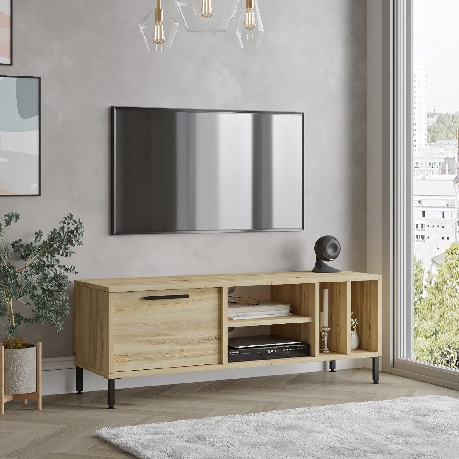 Tv komoda SN 184 * Dimenzije : Š:120 cm D:35 cm V:43 cm Tv komoda SN 184,izrađena od kvalitetnog univera 18 mm obloženog melaminskom folijom u drvnom dezenu,kant traka abs 0.5 mm. Elegantna i moderna komoda predstavlja upečatljiv detalj dnevnog boravka. Naši proizvodi se proizvode od sirovina sertifikovanih prema E1 standardu, koje ne sadrže kancerogene supstance i koje se pridržavaju zdravstvenih normi Evropske unije.