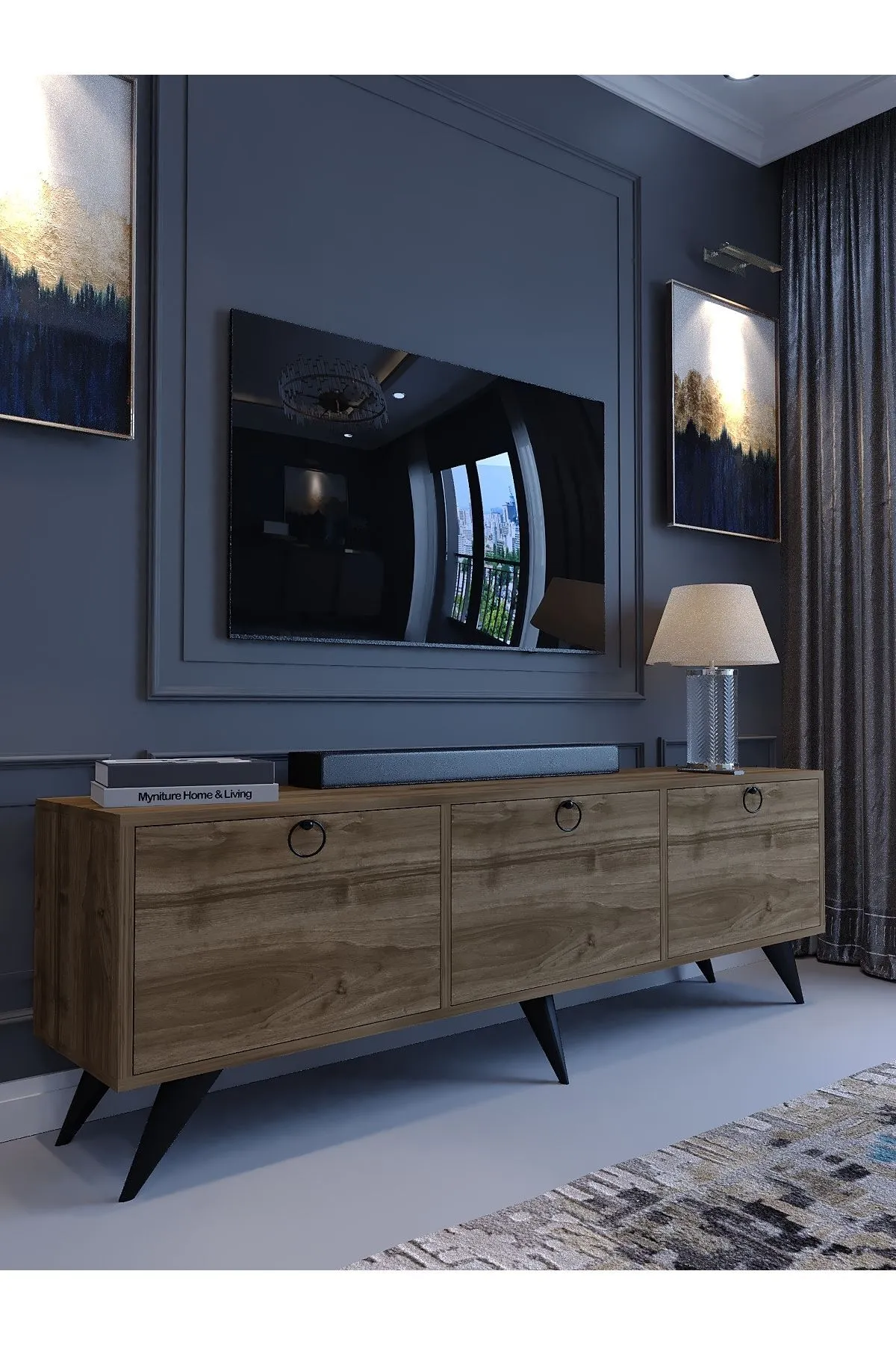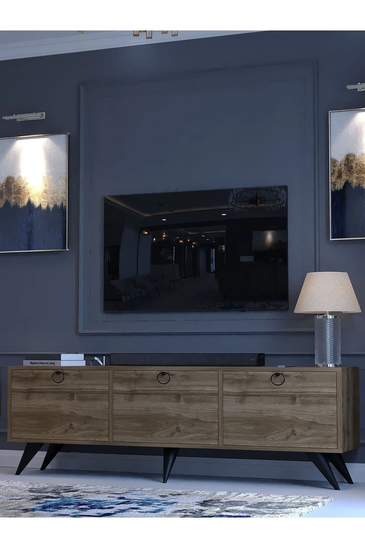 Tv komoda SN 226 * Dimenzije : Š:150cm D:30 cm V:44 cm Tv komoda SN 226,izrađena od kvalitetnog univera 18 mm obloženog melaminskom folijom u drvnom dezenu,kant traka abs 0.5 mm. Elegantna i moderna komoda predstavlja upečatljiv detalj dnevnog boravka. Naši proizvodi se proizvode od sirovina sertifikovanih prema E1 standardu, koje ne sadrže kancerogene supstance i koje se pridržavaju zdravstvenih normi Evropske unije.