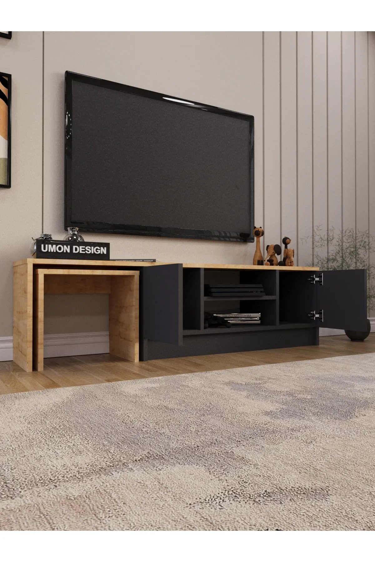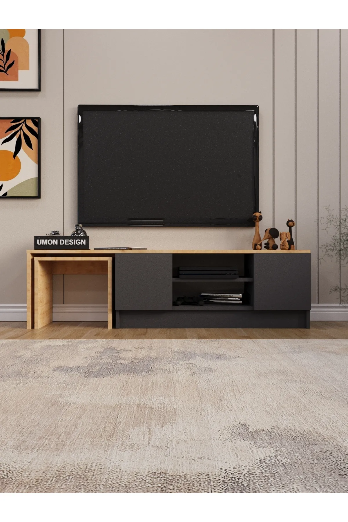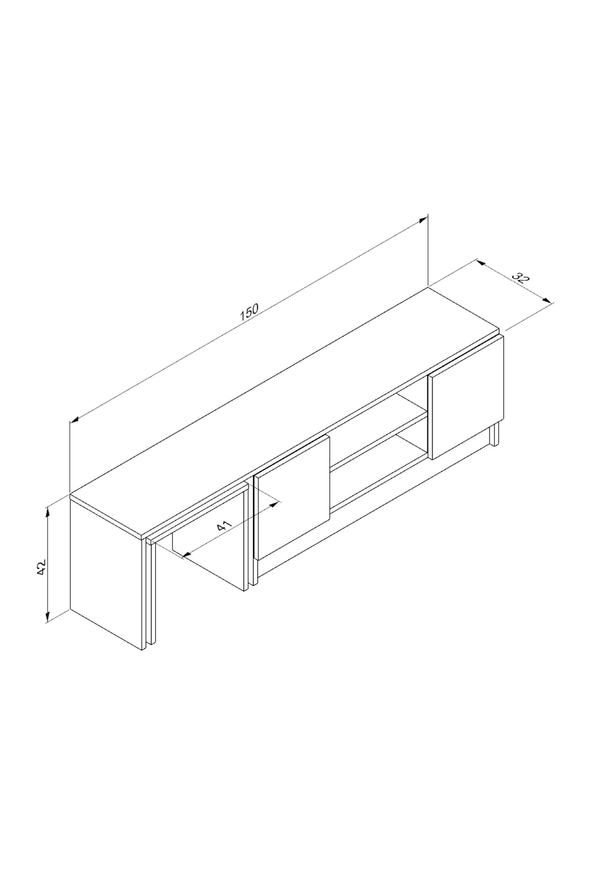 Tv komoda SN 230 * Dimenzije : Š:150 cm D:32 cm V:42 cm Tv komoda SN 230,izrađena od kvalitetnog univera 18 mm obloženog melaminskom folijom u dezenu,kant traka abs 0.5 mm. Elegantna i moderna komoda predstavlja upečatljiv detalj dnevnog boravka. Naši proizvodi se proizvode od sirovina sertifikovanih prema E1 standardu, koje ne sadrže kancerogene supstance i koje se pridržavaju zdravstvenih normi Evropske unije.
