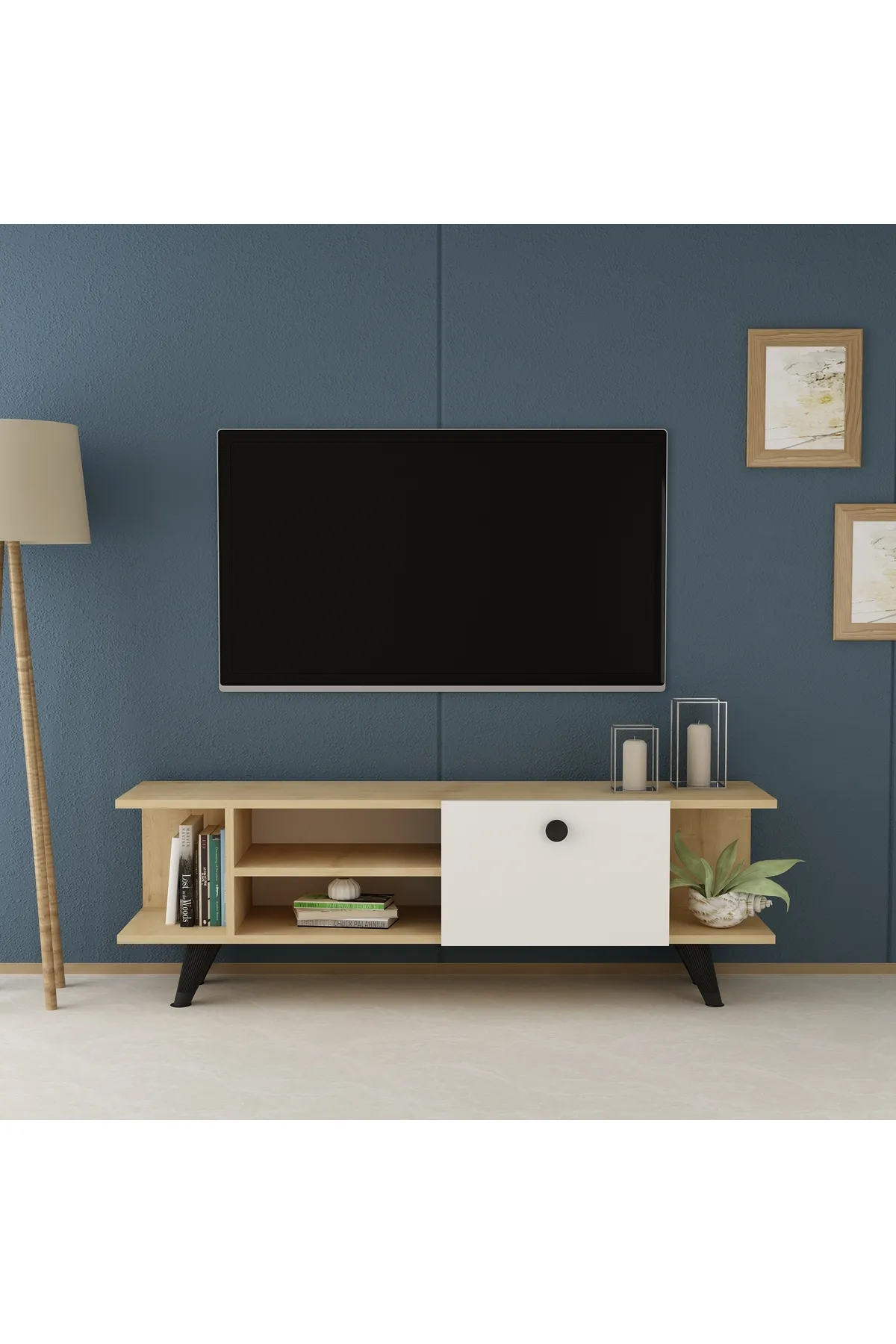 Tv komoda SN 232 * Dimenzije : Š:120 cm D:30 cm V:45 cm Tv komoda SN 232,izrađena od kvalitetnog univera 18 mm obloženog melaminskom folijom u drvnom dezenu i beloj boji,kant traka abs 0.5 mm. Elegantna i moderna komoda predstavlja upečatljiv detalj dnevnog boravka. Naši proizvodi se proizvode od sirovina sertifikovanih prema E1 standardu, koje ne sadrže kancerogene supstance i koje se pridržavaju zdravstvenih normi Evropske unije.