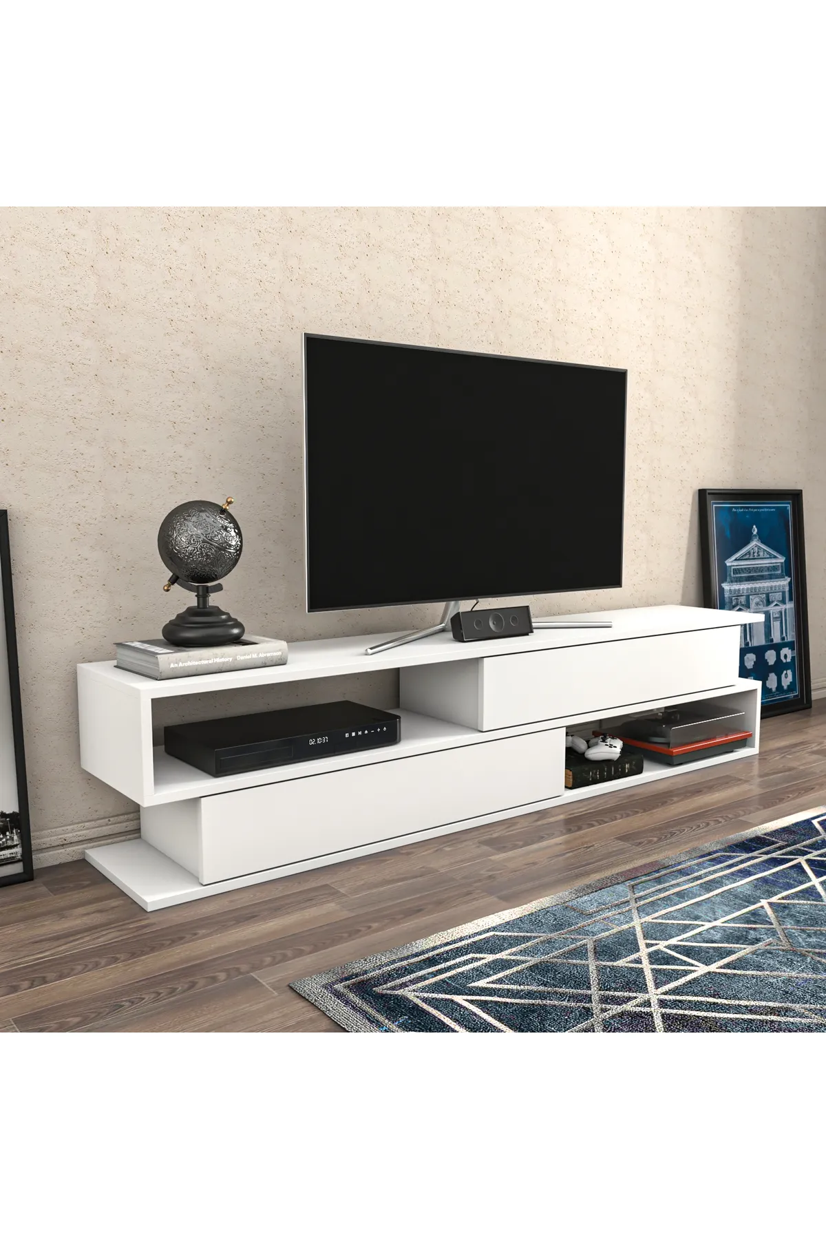 Tv komoda SN 281 * Dimenzije : Š:160 cm D:35 cm V:40 cm Tv komoda SN 281,izrađena od kvalitetnog univera 18 mm obloženog melaminskom folijom u beloj boji,kant traka abs 0.5 mm. Elegantna i moderna komoda predstavlja upečatljiv detalj dnevnog boravka. Naši proizvodi se proizvode od sirovina sertifikovanih prema E1 standardu, koje ne sadrže kancerogene supstance i koje se pridržavaju zdravstvenih normi Evropske unije.