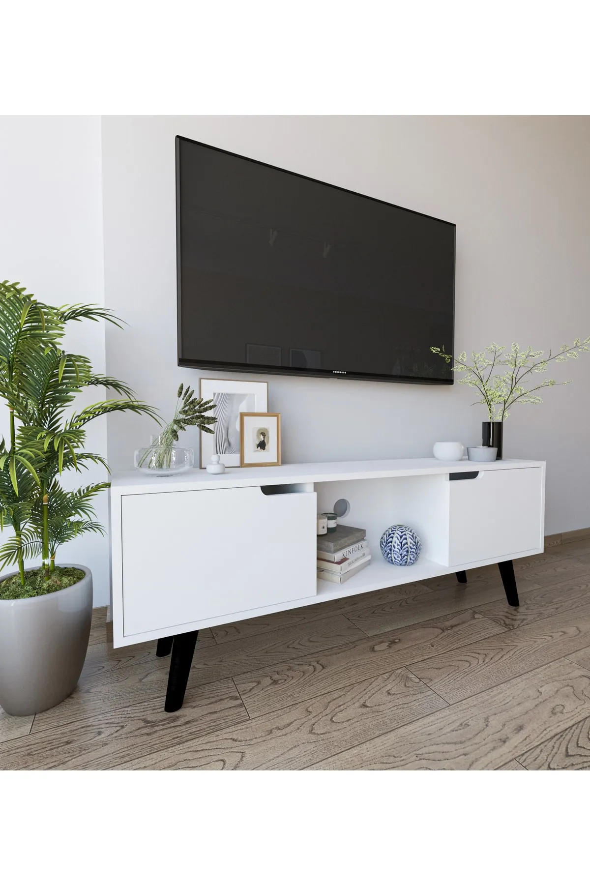 Tv komoda SN 313 * Dimenzije : Š:140 cm D:30 cm V:53 cm Tv komoda SN 313,izrađena od kvalitetnog univera 18 mm obloženog melaminskom folijom u beloj boji,kant traka abs 0.5 mm. Elegantna i moderna komoda predstavlja upečatljiv detalj dnevnog boravka. Naši proizvodi se proizvode od sirovina sertifikovanih prema E1 standardu, koje ne sadrže kancerogene supstance i koje se pridržavaju zdravstvenih normi Evropske unije.
