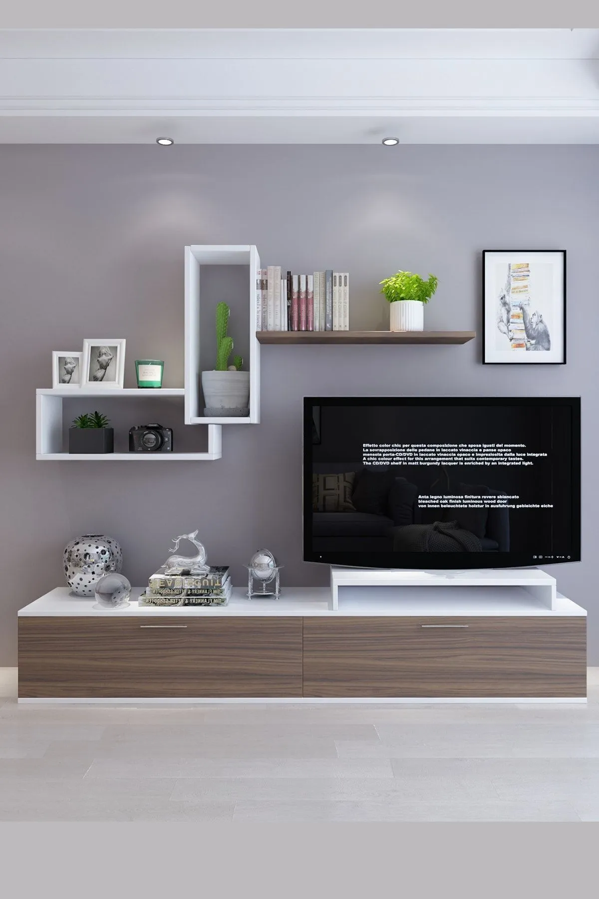 Tv komoda SN 356 * Dimenzije : Š:180/142 cm D:35/18 cm V:38/72 cm Tv komoda SN 356,izrađena od kvalitetnog univera 18 mm obloženog melaminskom folijom u drvnom dezenu i beloj boji,kant traka abs 0.5 mm. Elegantna i moderna komoda sa zidnom policom predstavlja upečatljiv komplet dnevnog boravka. Naši proizvodi se proizvode od sirovina sertifikovanih prema E1 standardu, koje ne sadrže kancerogene supstance i koje se pridržavaju zdravstvenih normi Evropske unije.