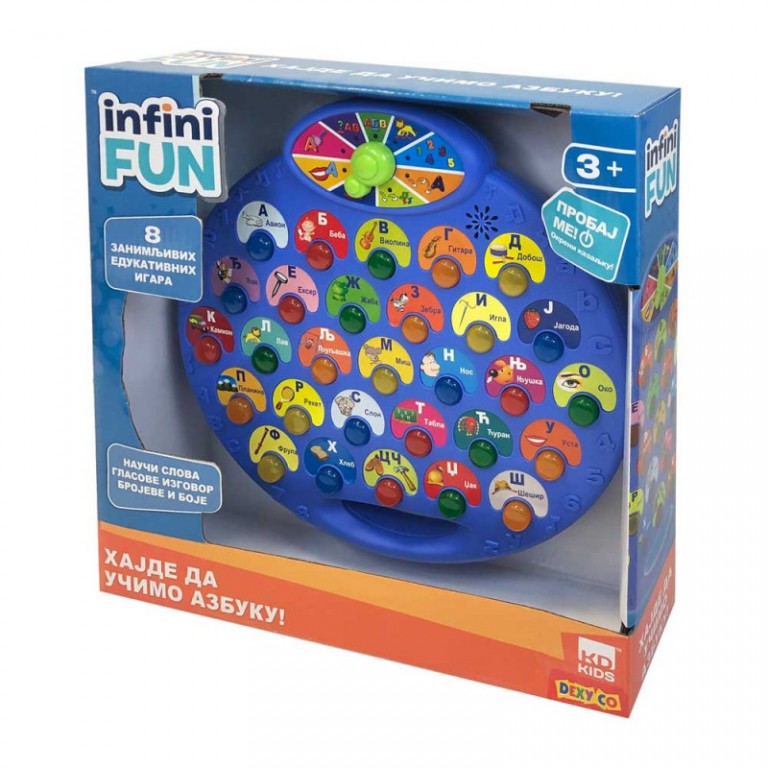 - U svakoj igri dete se za date pogrešne odgovore ohrabruje na novi pokušaj a za tačne odgovore nagradjuje. Igre su iz različitih oblasti boje, slova, zivotinje. Tasteri su osvetljeni i imaju funkciju ponavljanja pitanja. Poseduje i ručku za lako nošenje tako da je možete nositi svuda uz vas.