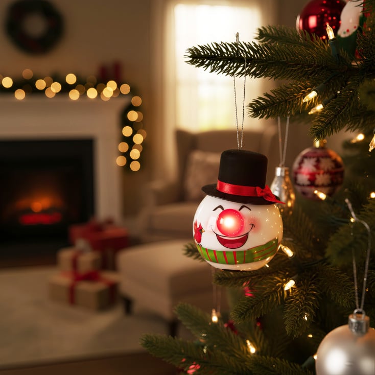 Dekoracija za jelku u obliku sneška, sa crvenom trepćućom LED diodom