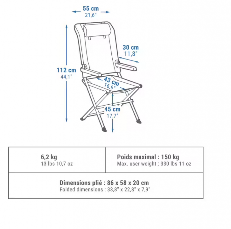 - 3 položaja, 2 naslona za ruke, 1 naslon za glavu, visina sedišta. 45 cm.