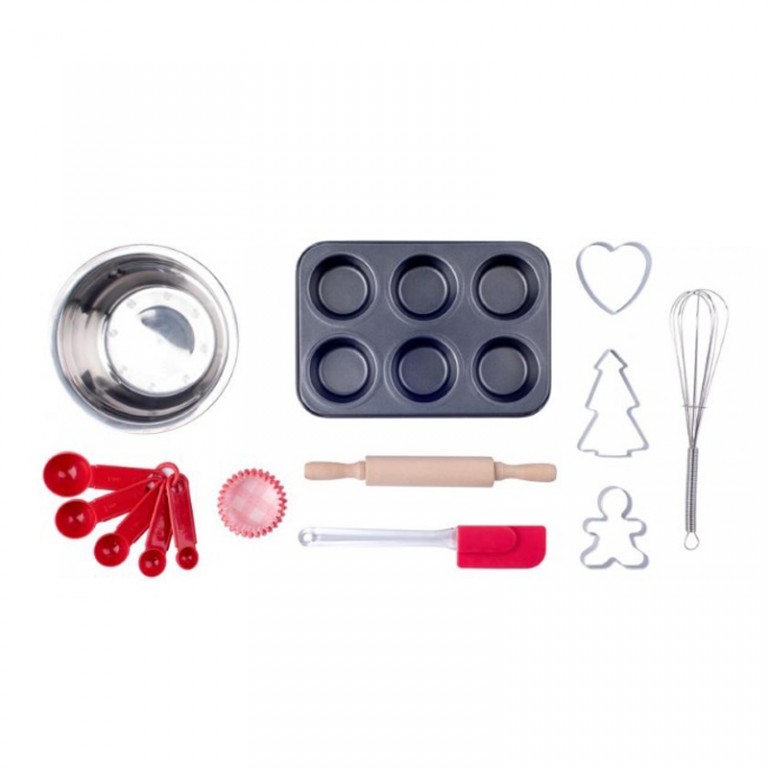- Kuhinjski set sadrzi sve sto je potrebno za pecenje slatkih delikatesa, a posebno mafina: posudu sa mikserom,teflonskom posudom za pecenje kolacica, valjak i ostale delove