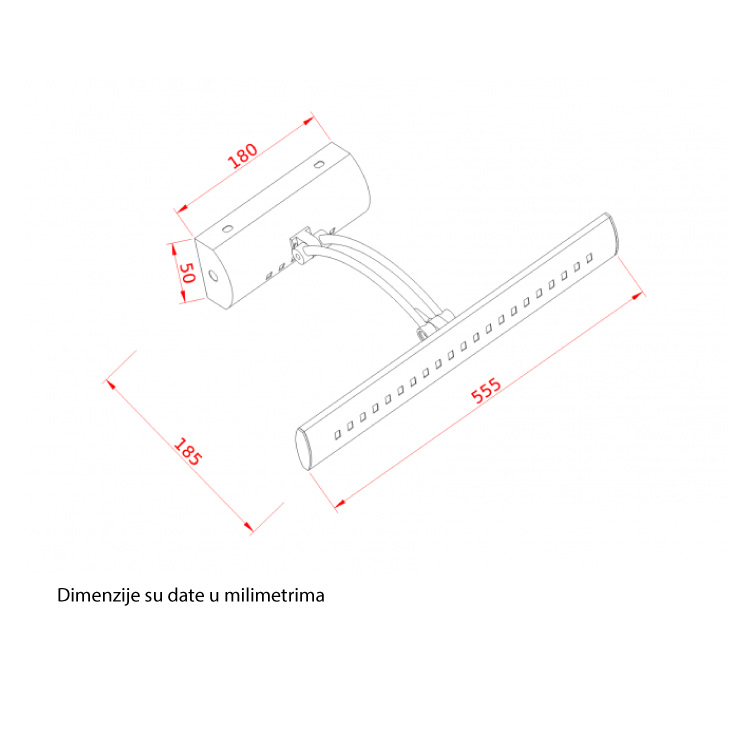 - Dimenzije 550x35x17 mm, baza: 180x50x30 mm