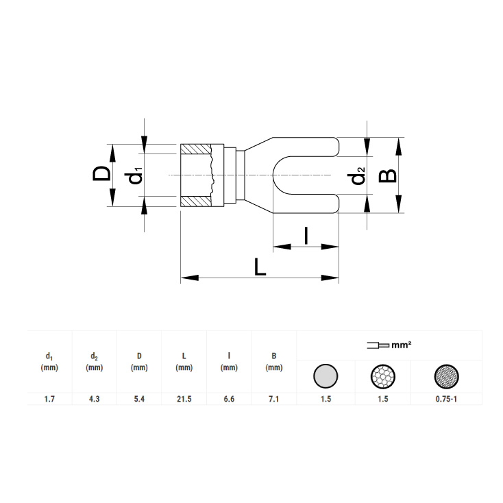 DimenzijeL: 21.5 mm, d1: 1.7 mm, d2: 4.3 mm, M4
