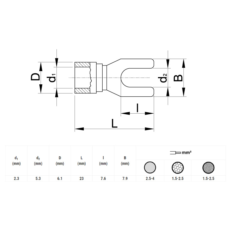 DimenzijeL: 23 mm, d1: 2.3 mm, d2: 5.3 mm, M5