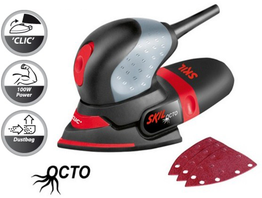 Prilagodljiva vibraciona brusilica sa rukohvatom za poslove brušenja u i oko kuće. Kompaktan dizajn i mala težina za optimalan komfor korisnika. Višenamenski oblik postolja za velike površine, kao i za uglove. Efikasno pomeranje brusilice i snažan motor za savršene rezultate brušenja. Jednostavni Clic mehanizam za okretanje ili zamenu delta nastavka i postavljanje specijalnih dodataka bez korišćenja alata. Ugrađeni sistem za sakupljanje prašine i kese za prašinu za snižavanje nivoa prašine. Delta nastavak se može okrenuti dva puta da bi se obezbedio duži vek trajanja. Mekani rukohvat za optimalnu kontrolu. Laka izmena papira (sistem Velcro). Nizak nivo buke i vibracija.