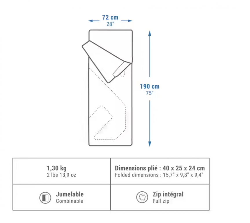 - Spaja se u dvostruku vreću za dve osobe: spojite 2 slične vreće za spavanje.