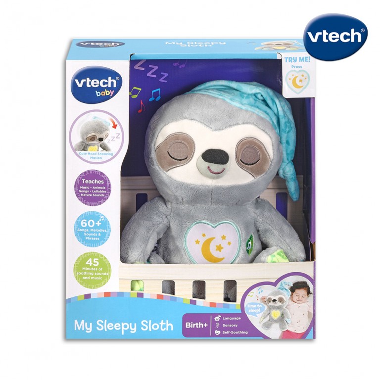 - Moj pospani lenjivko, brenda VTech Mekan i pogodan za maženje pa deci pruža umirujuć osećaj i odgovarajajuću taktilnu stimulaciju. Emituje 3 pesme za pevanje, 5 priče i 25 melodija u trajanju od 45 min. Pritiskom na dugme u obliku srca pospani lenjivko može služiti i kao noćno svetlo i podstaći senzornu stimulaciju.