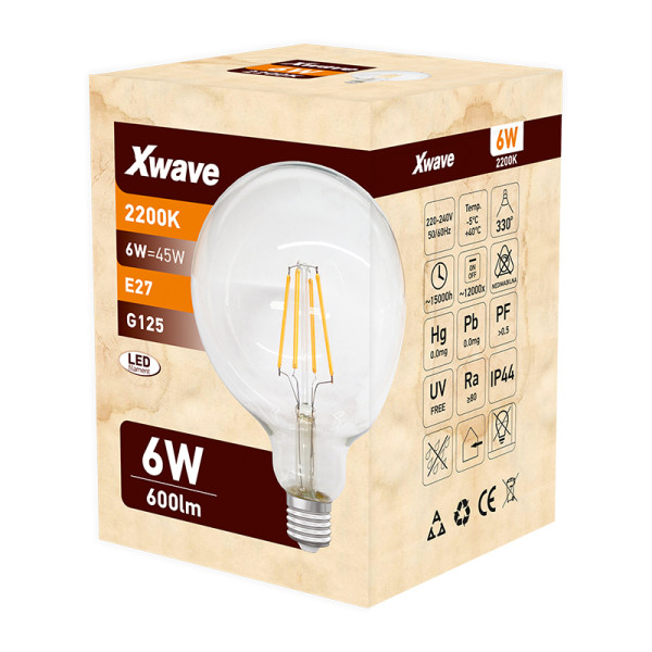Xwave E27 6W SL-F-S6-2200K Filament Sijalica 2200K/G125/220V,600Lm,Toplo Bela
